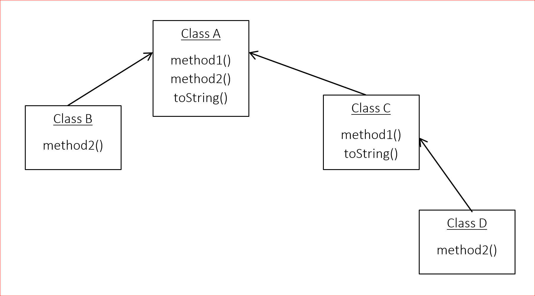 - **Trace** the execution of methods through a class hierarchy and predict output.